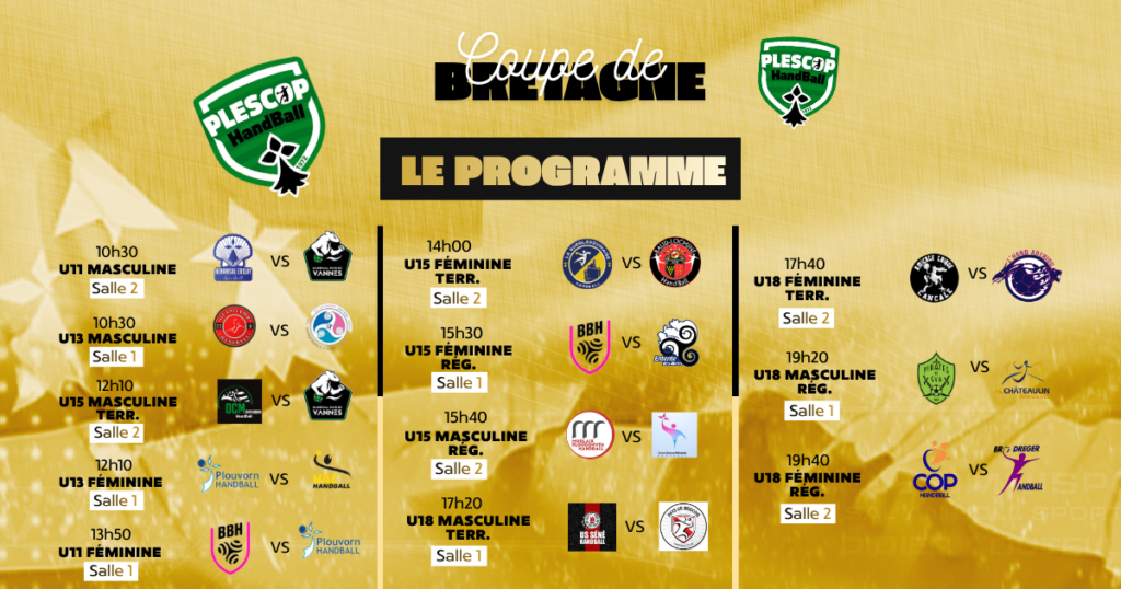 Pour clore cette saison 2025-2026, nous vous donnons rendez-vous le vendredi 1er mai pour la Coupe de Bretagne Jeunes. Cette année, l’hôte de ces finalités est le club ES Plescop Handball, en co-organisation avec la Ligue de Bretagne de Handball.